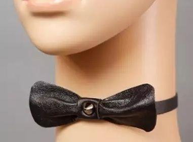 Классическая черная бабочка из натуральной кожи, украшенная шипом.
