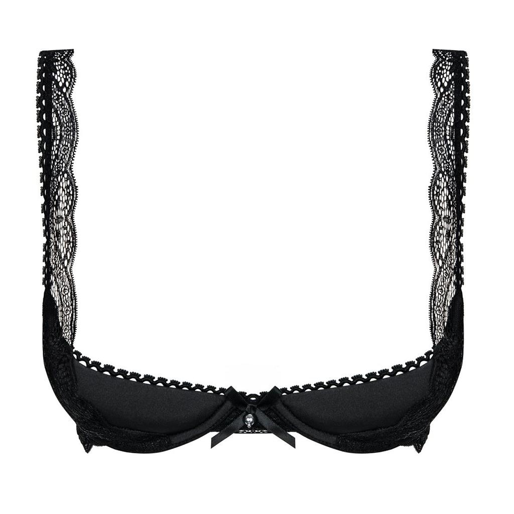 Даже если у вас не самый большой бюст, то в открытом бюстгальтере Miamor он покажется мужчине мега пышным и экстра аппетитным. Благодаря косточкам и небольшим поддерживающим чашечкам ваши нежные округлости приподнимутся и приблизятся друг к другу, формируя манящую ложбинку.