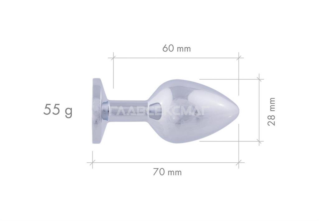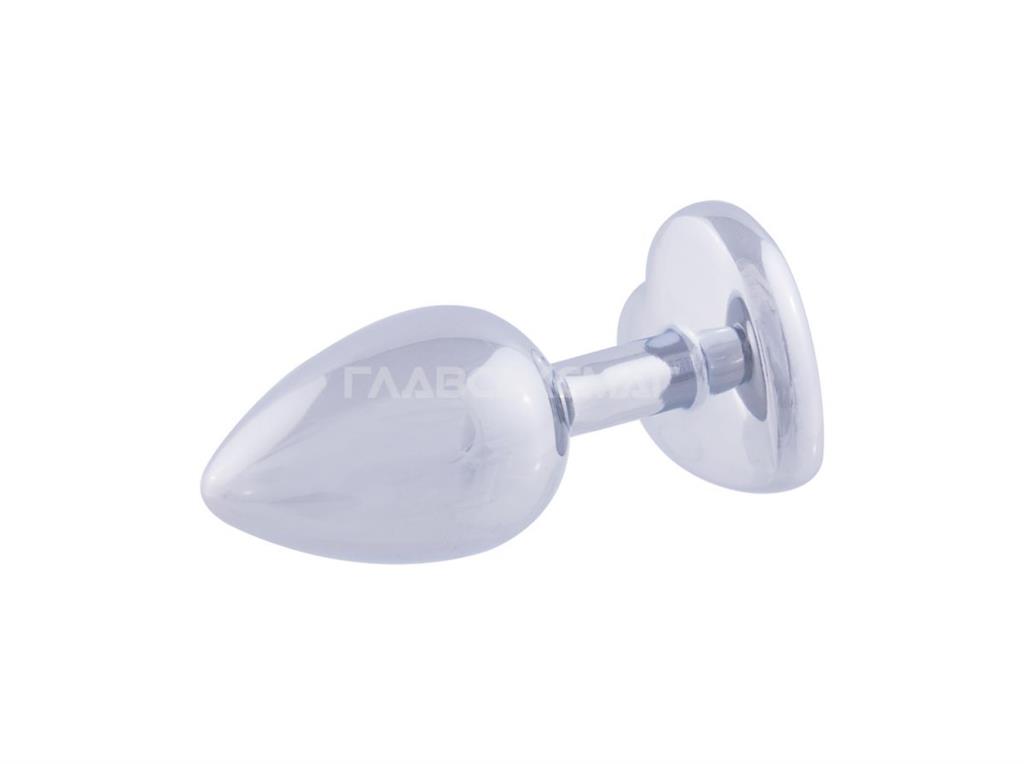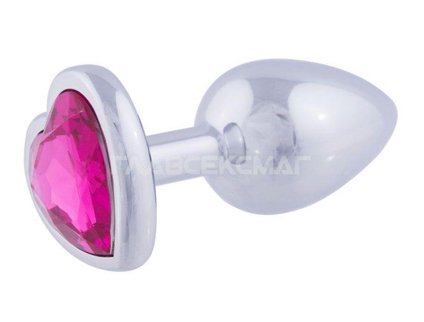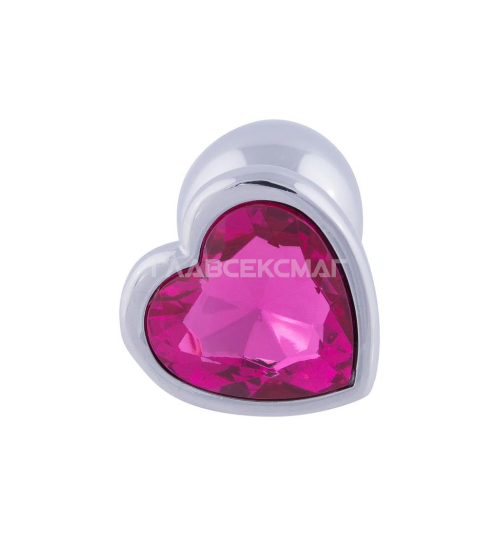 Серебристая анальная пробка с ярко-розовым кристаллом-сердцем.