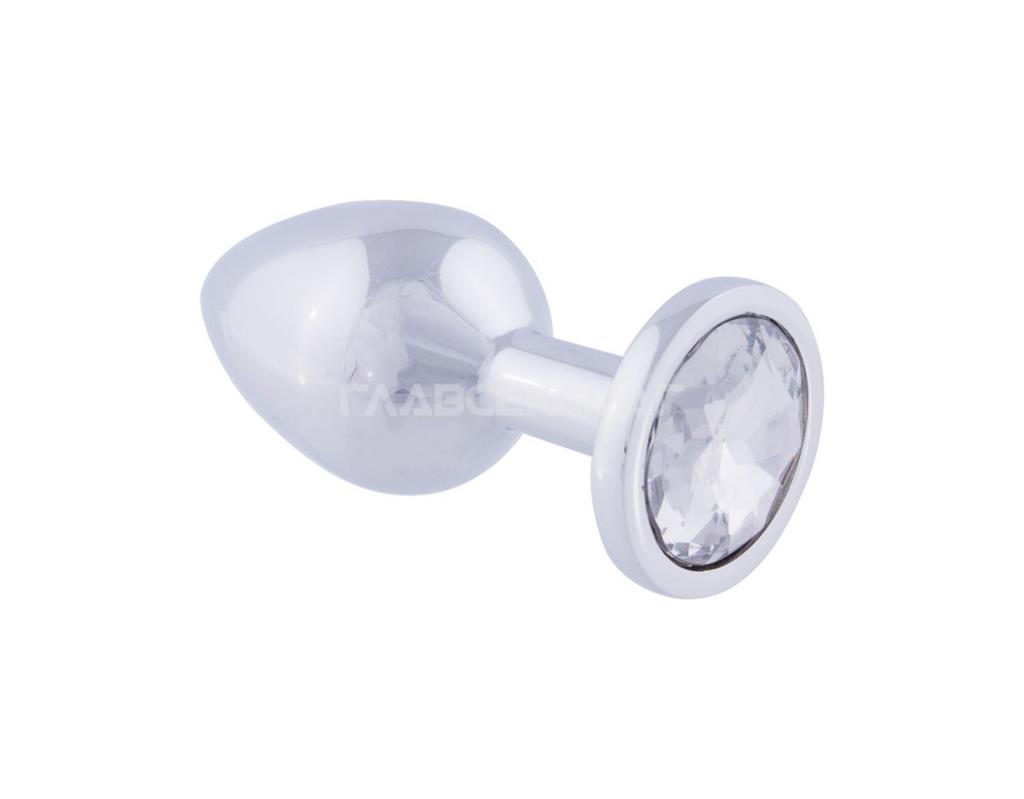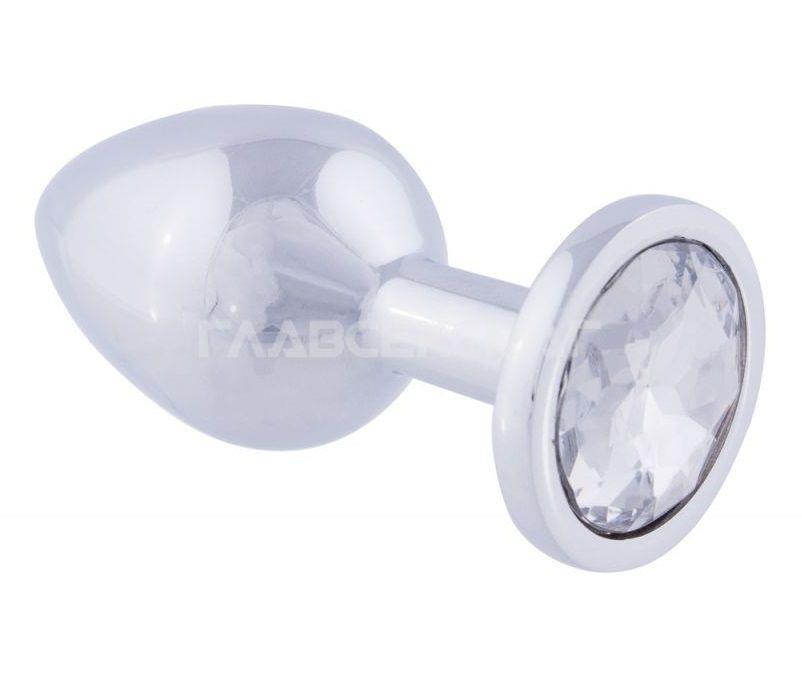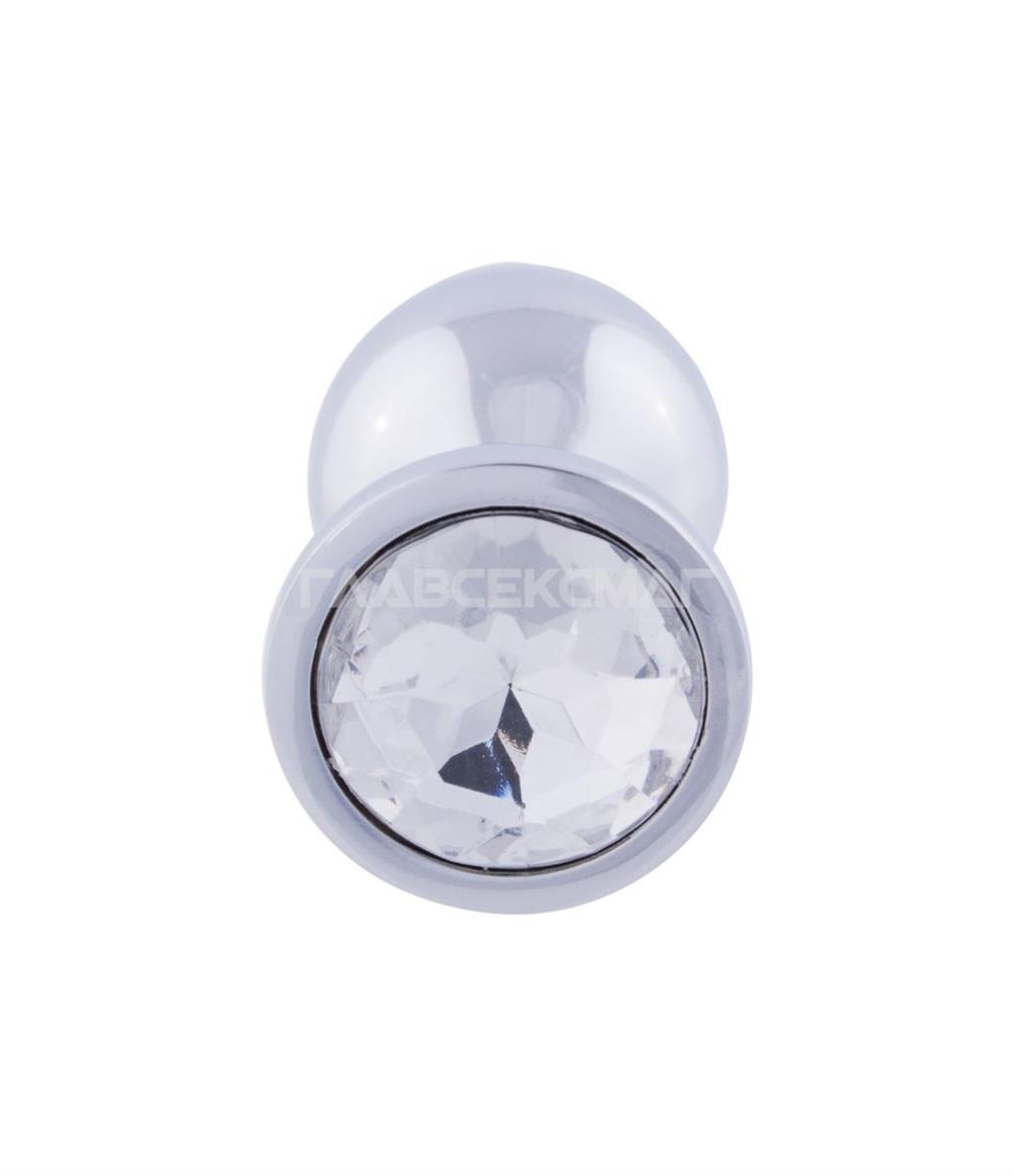 Серебристая анальная пробка с прозрачным кристаллом.