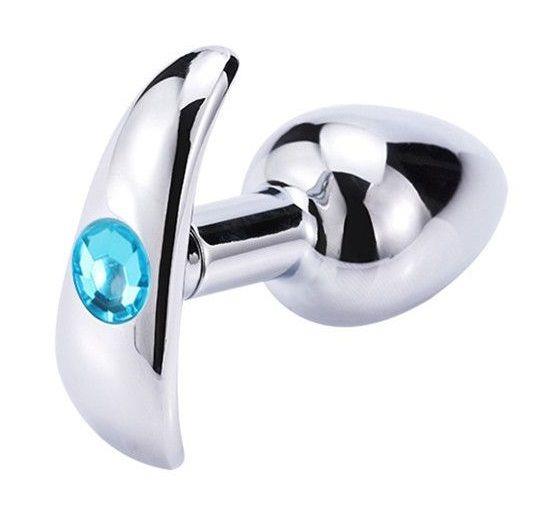 Серебристая анальная пробка с голубым кристаллом - специально разработанная эргономичная форма идеальна для ношения и получения удовольствия.