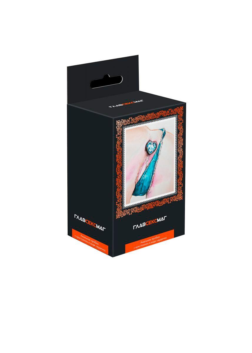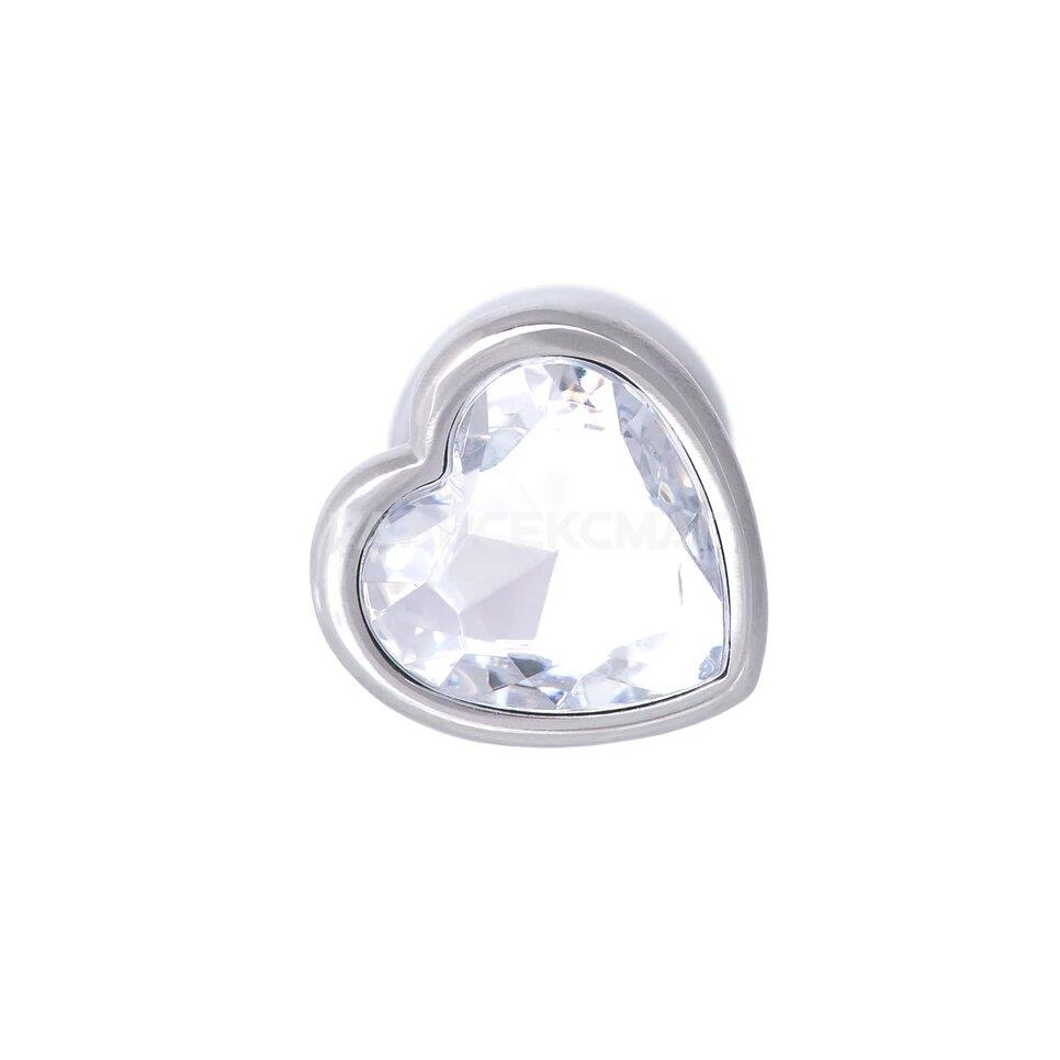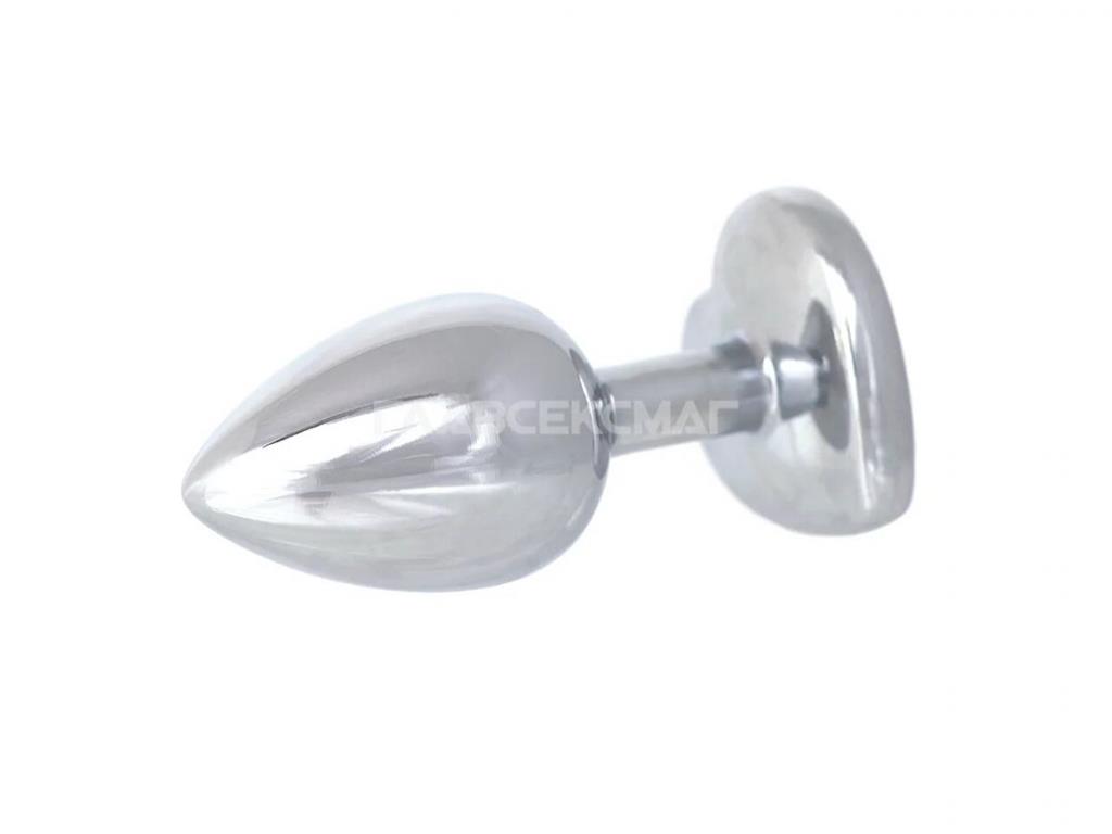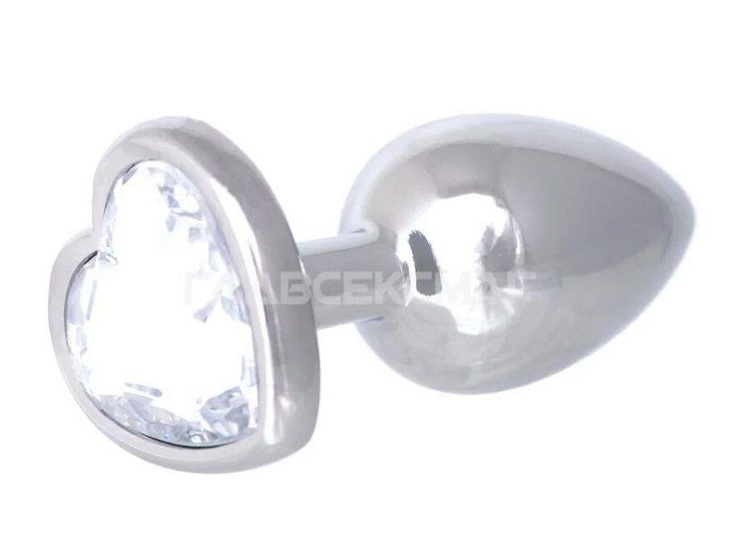 Серебристая анальная пробка с прозрачным кристаллом-сердцем.