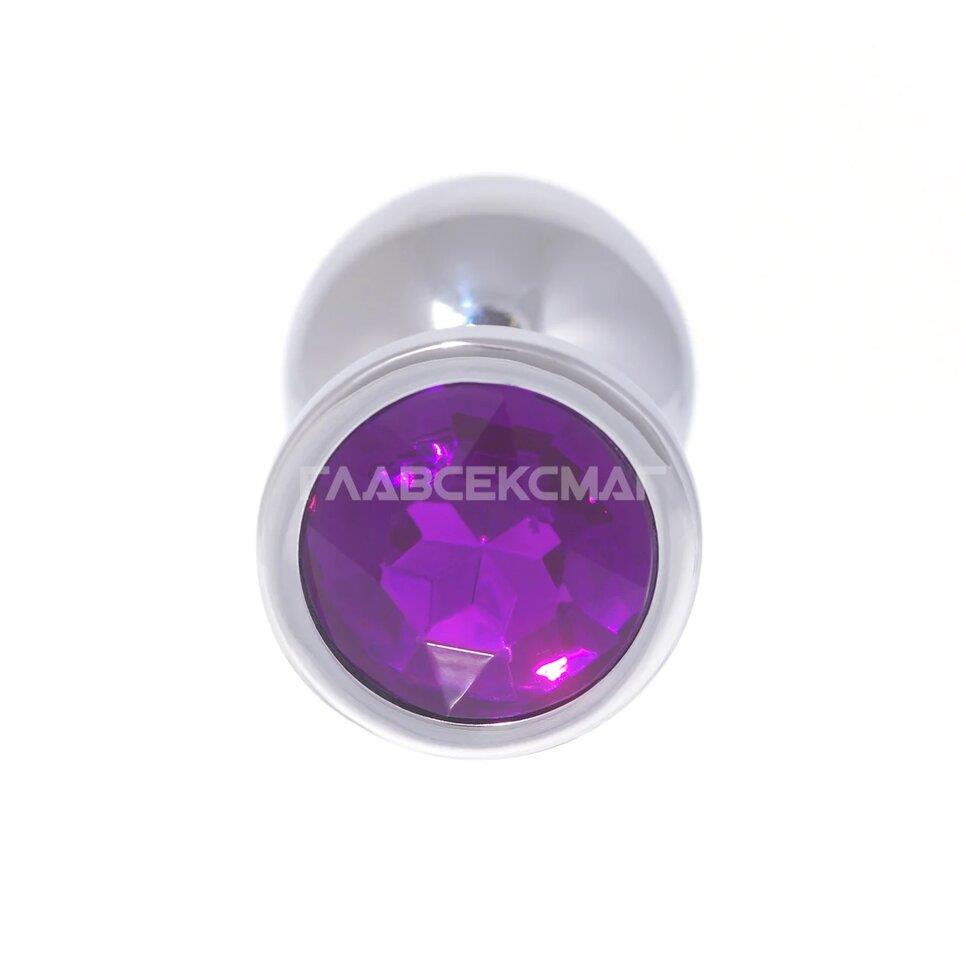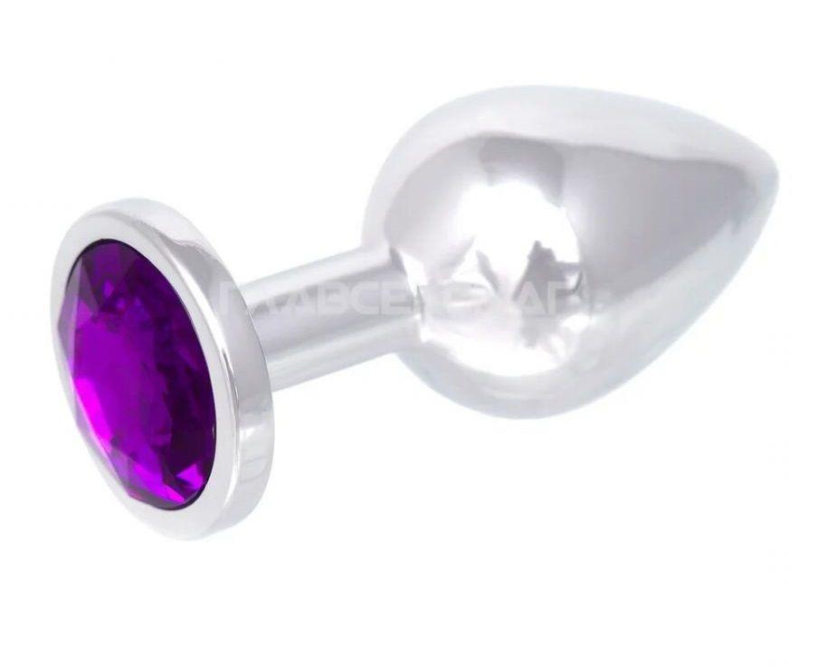 Серебристая анальная пробка с фиолетовым кристаллом.