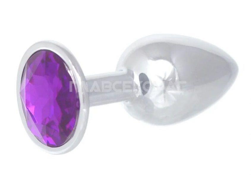 Серебристая анальная пробка с фиолетовым кристаллом превосходно принимает и сохраняет температуру тела. Создает чувство наполненности.