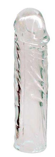 Закрытая прозрачная насадка-фаллос Crystal sleeve - 16 см.