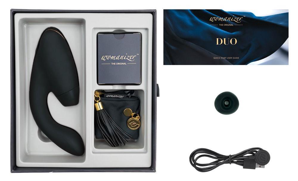 Чёрный стимулятор Womanizer - DUO имеет клиторальный стимулятор, выполненный в форме традиционного Womanizer – он мягко ласкает клитор с помощью технологии Pleasure Air. Кроме того, у DUO есть мощный вибратор, который адаптируется к форме Вашего тела, чтобы идеально стимулировать Ваши самые важные точки.