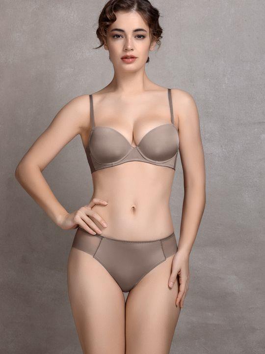 Бюстгальтер-балконет с формованной чашкой. По пройме и задней бретели использована сетка с бесшовным краем для дополнительной поддержки.