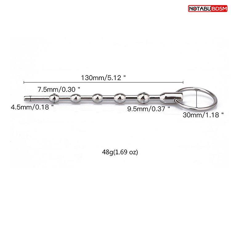 Уретральный катетер для стимуляции уретрального канала. Мужской катетер изготовлен из высококачественной медицинской стали, имеет рельефную структуру. Рабочая длина - 11,5 см. Минимальный диаметр - 0,45 см. Вес - 48 грамм.