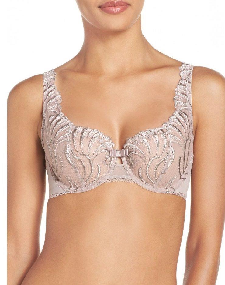 Элегантный бюстгальтер Lana с мягкими чашками, на каркасах. Чашки из тюля с изысканной вышивкой в виде перьев, переходящие на бретели.