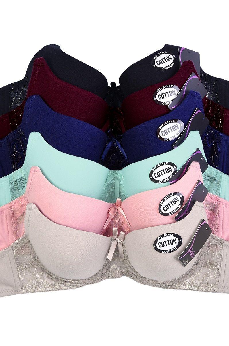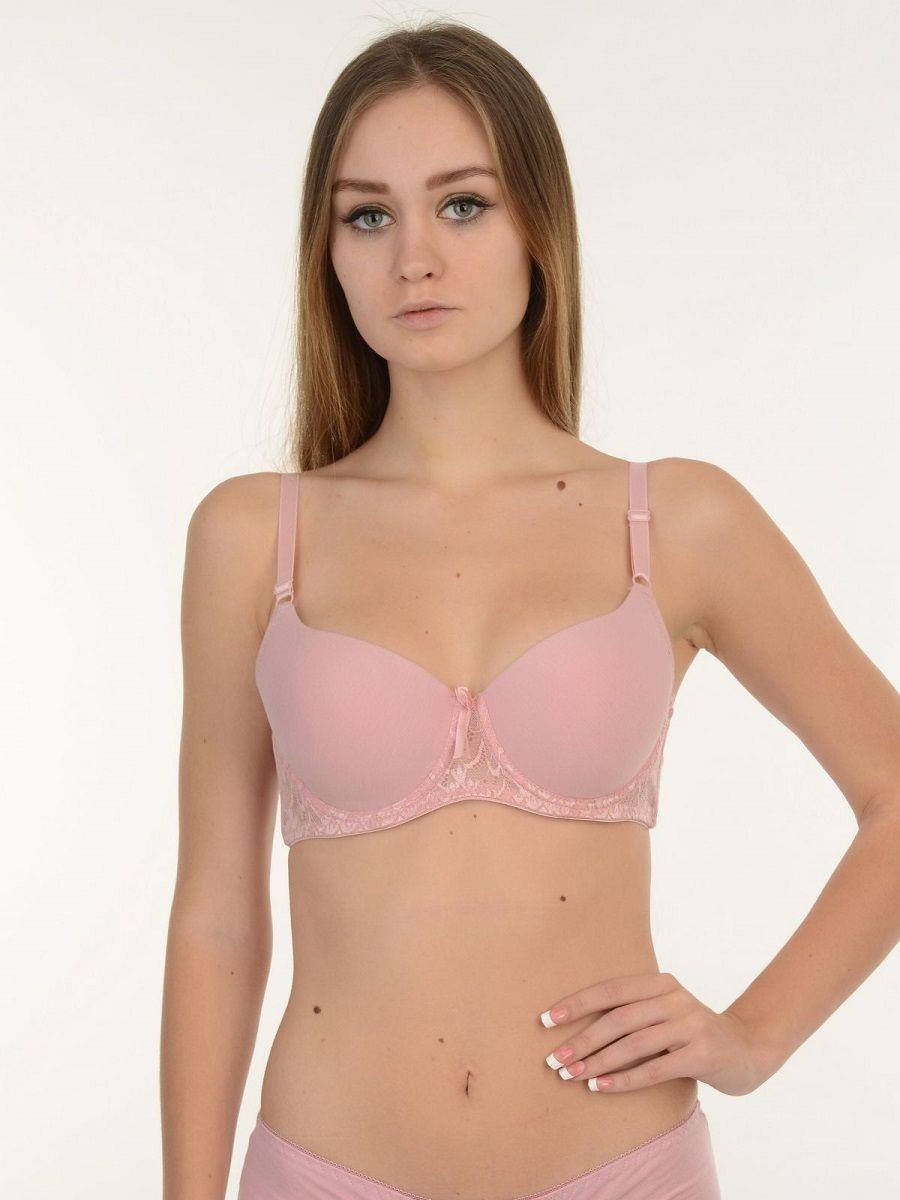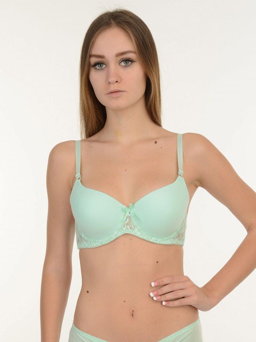 Бюстгальтер с формованными чашками на поролоне, на каркасах. Выполнен из эластичного смесового полотна с содержанием хлопка.