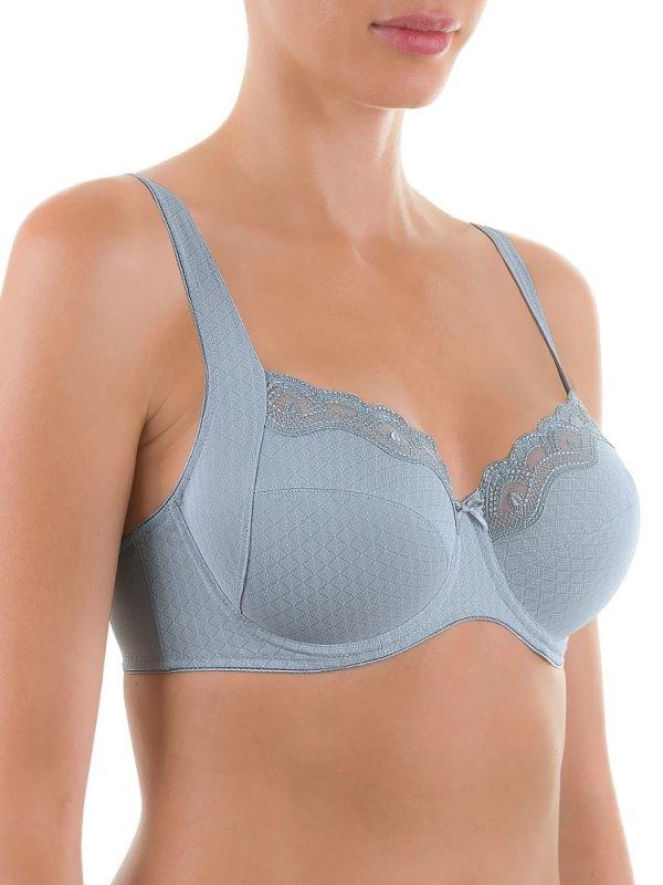 Классический бюстгальтер нежно-голубого цвета на каркасах с боковым подкроем, переходящим в бретель. Очень комфортен в носке.