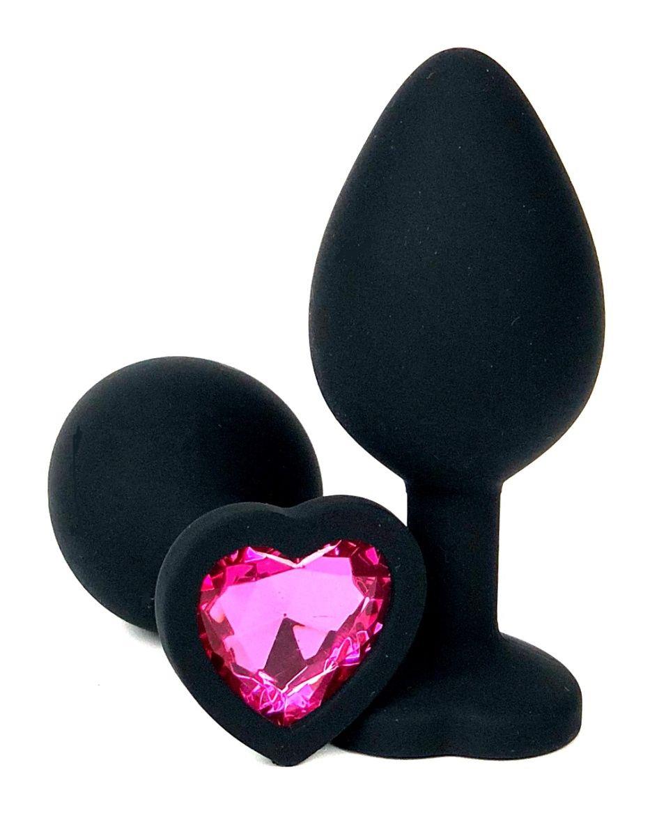 Черная силиконовая анальная пробка с красочным розовым стразом-сердечком внесет разнообразие в вашу интимную жизнь.