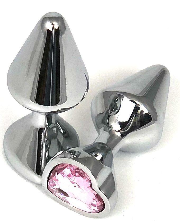 Серебристая анальная пробка с красочным розовым стразом внесет разнообразие в вашу интимную жизнь.