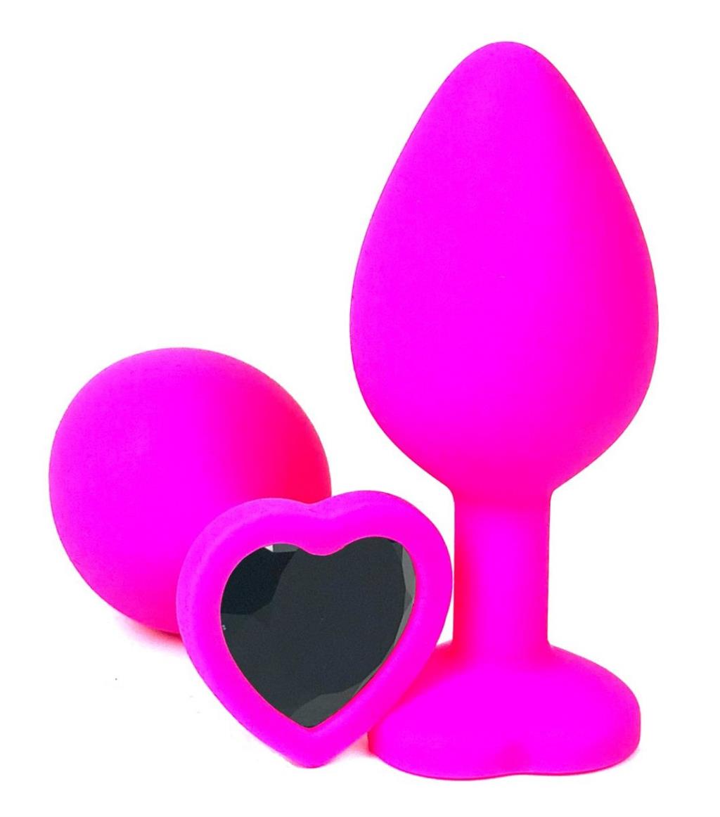 Розовая силиконовая анальная пробка с черным стразом в виде сердечка внесет разнообразие в вашу интимную жизнь.