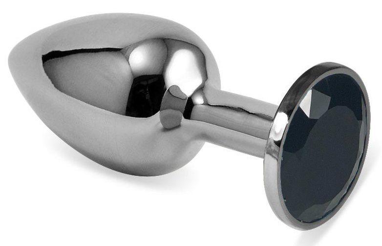 Серебристая анальная пробка с черным стразом внесет разнообразие в вашу интимную жизнь.