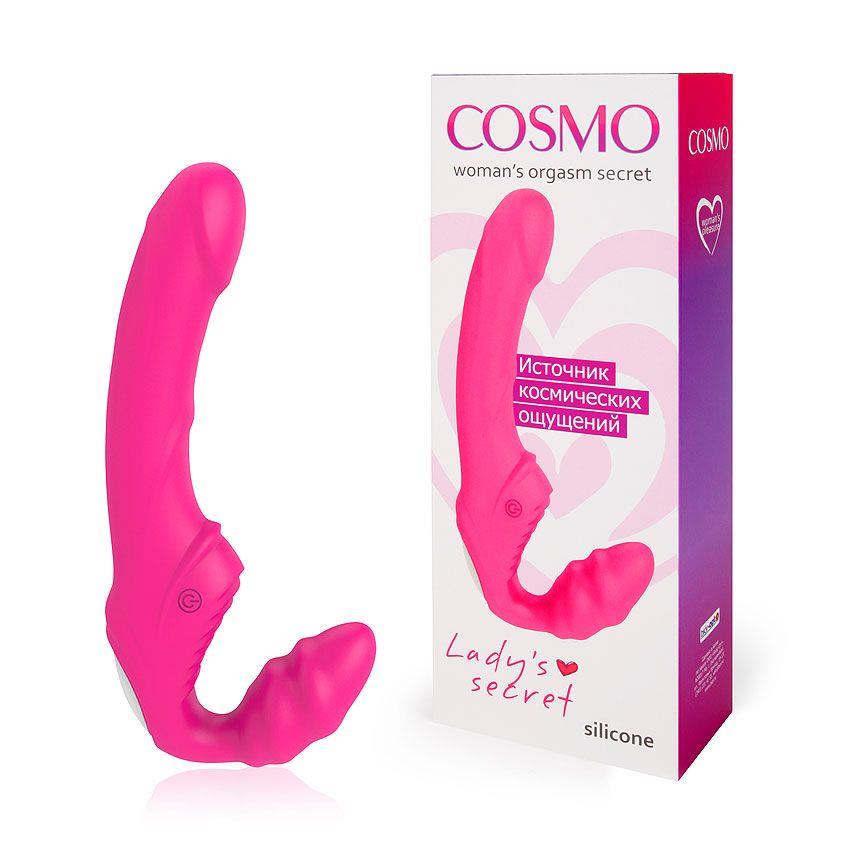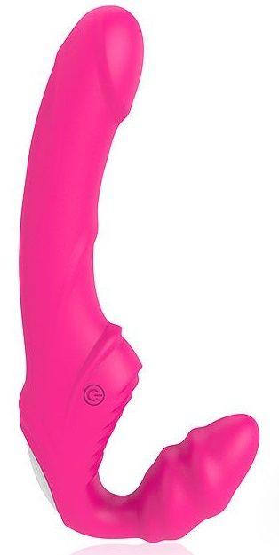 Розовый безремневой страпон с 9 режимами вибрации