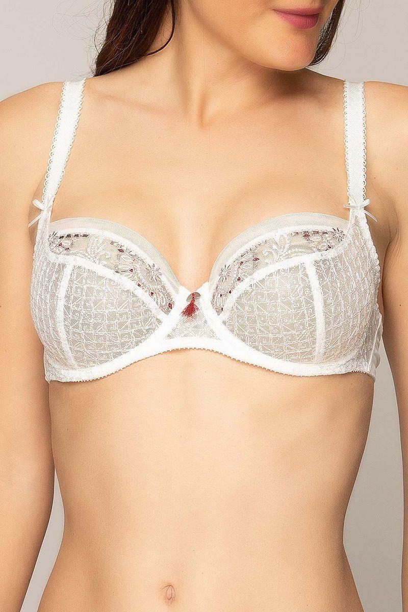 Бюстгальтер-балконет Victoria с мягкими чашками на каркасах. Коллекция декорирована прекрасной вышивкой в виде арок. Полоска из тюля по линии декольте привносит легкость и придает моделям оригинальность. Яркие акценты в узоре вышивки, тонкие и изящные, необычайно элегантны.
