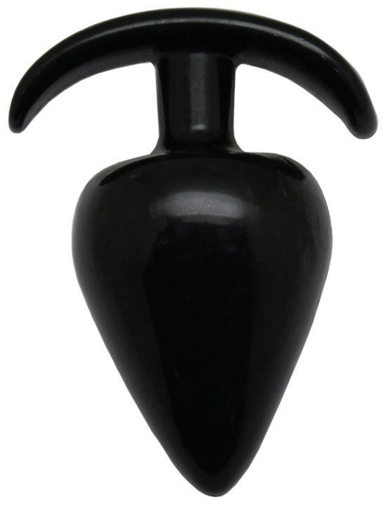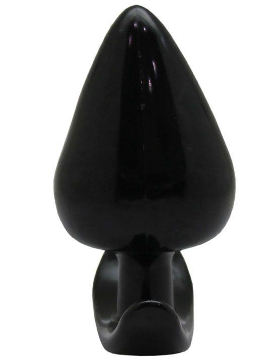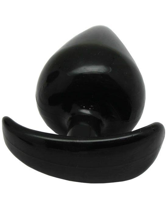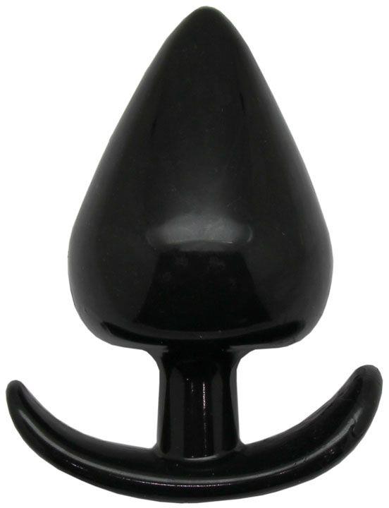 Гладкая коническая анальная пробка черного цвета снабжена ограничителем для контроля ситуации.