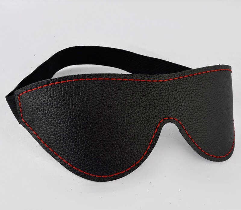 Черная маска изготовлена из натуральной кожи и дополнена красной декоративной строчкой.