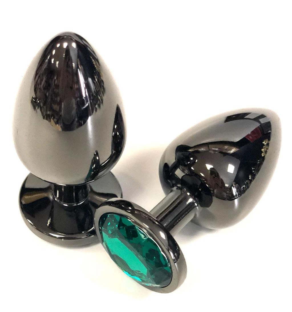 Черная анальная пробка с красочным зеленым стразом внесет разнообразие в вашу интимную жизнь.