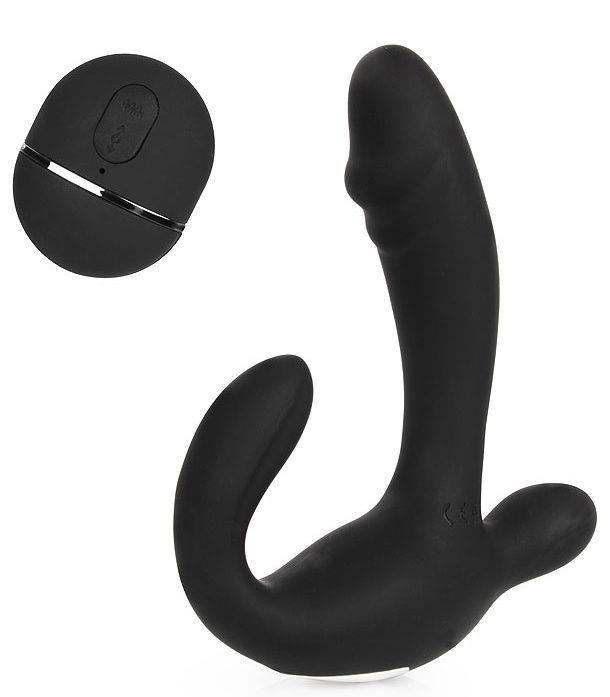 Черный двойной вибромассажер с 10 режимами вибрации и дистанционным пультом управления для любителей нестандартных эротических забав!