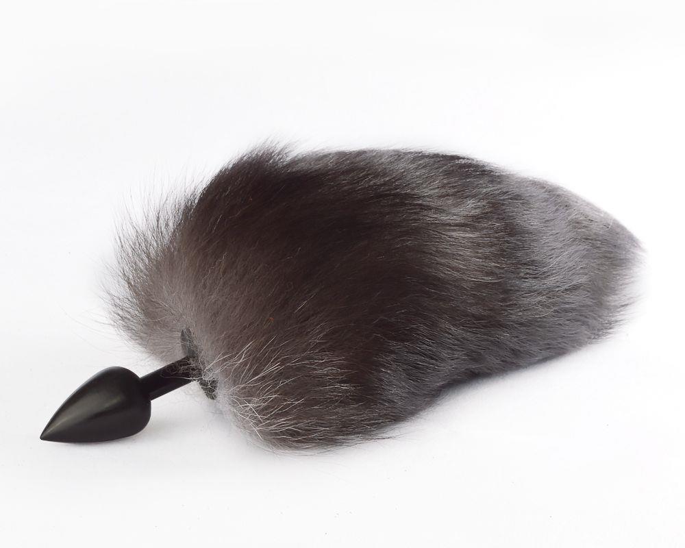 Черная анальная пробка выполнена из TPE с хвостом чернобурки (натуральный мех).