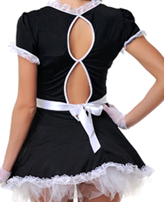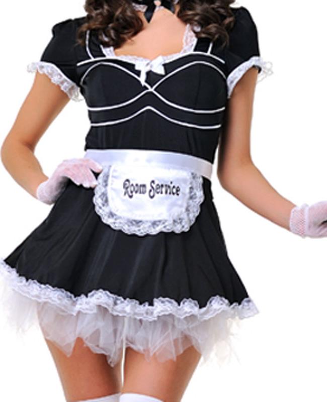 В комплекте: платье, фартук, лента на шею, головной убор, чулки, перчатки
