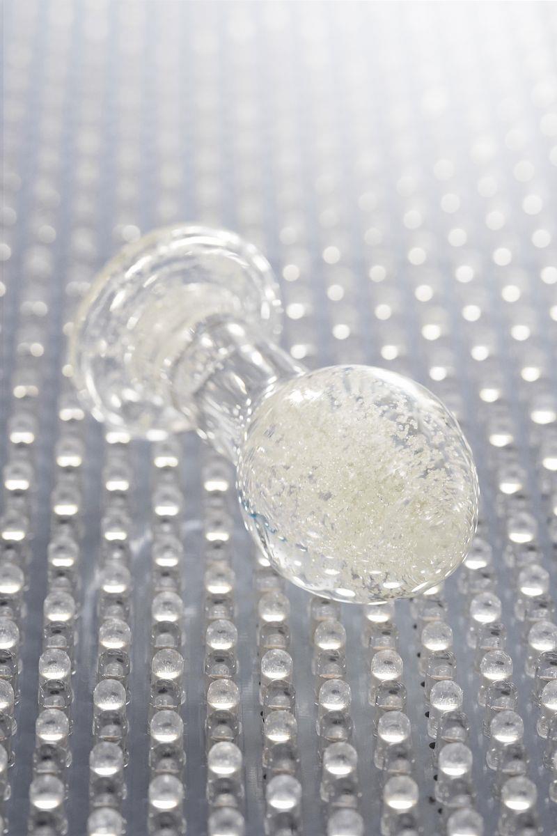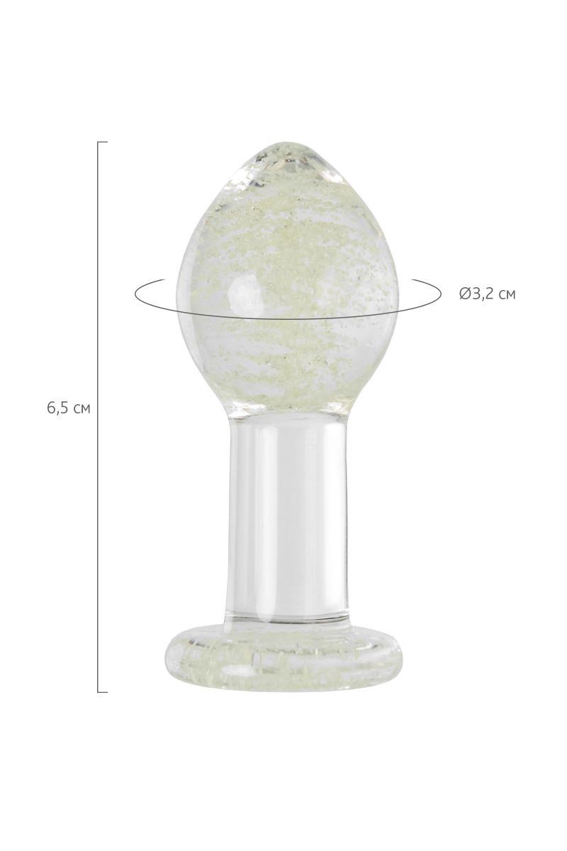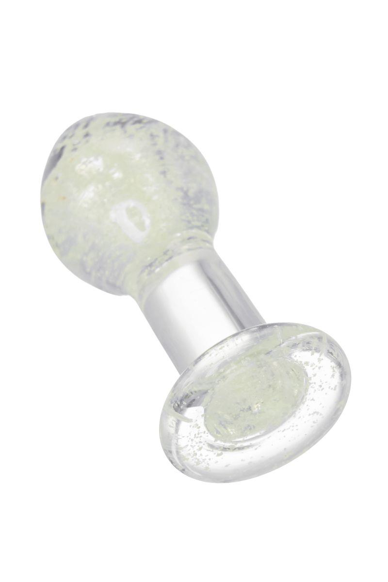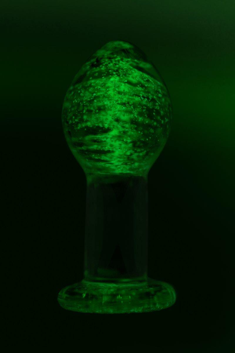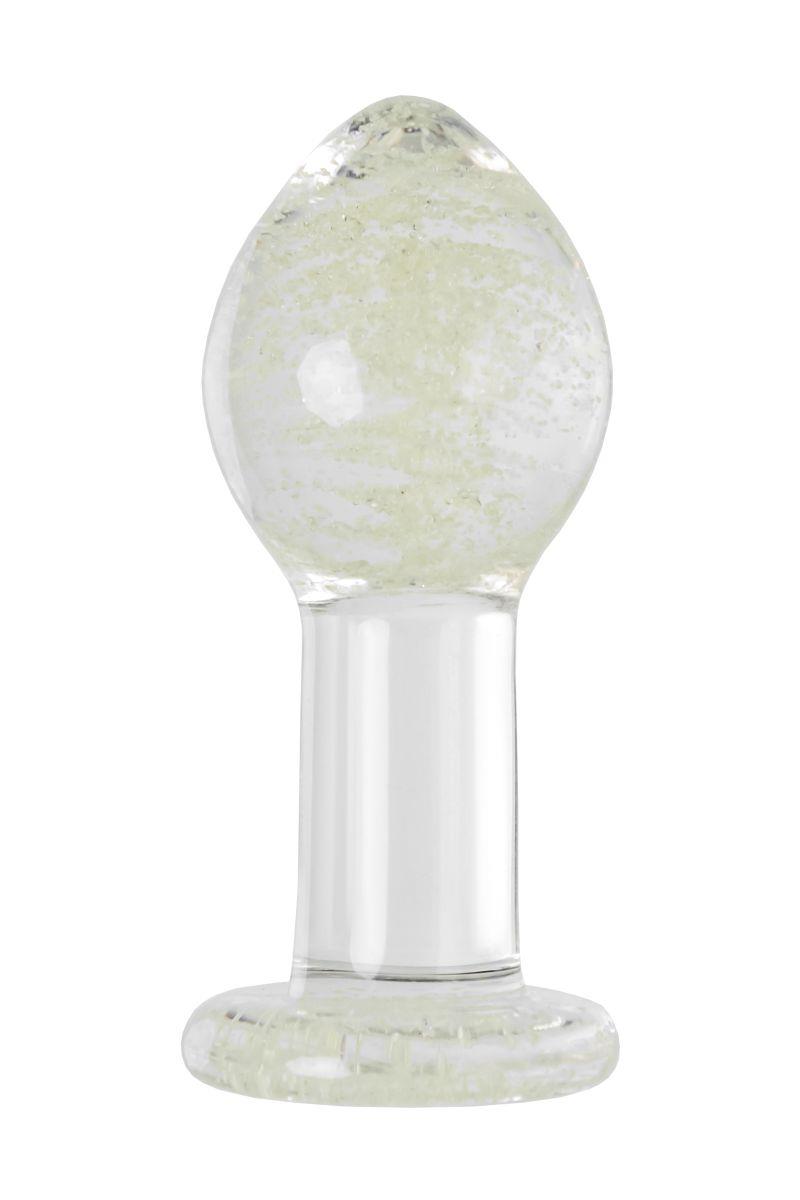 Прозрачная анальная пробка выполнена из закаленного стекла и содержит флуоресцентные микрочастицы, которые светятся в темноте. Такой необычный дизайн помогает внести в интимные игры разнообразие.