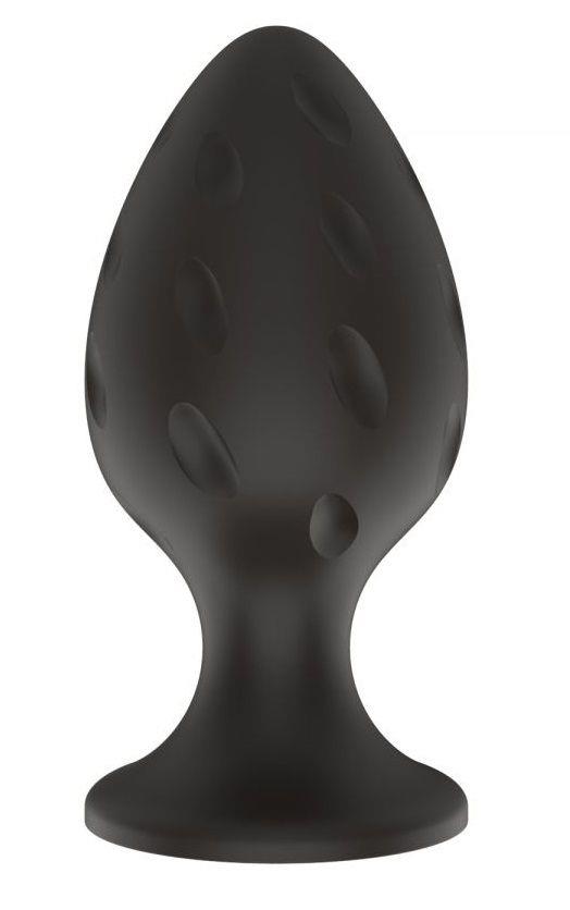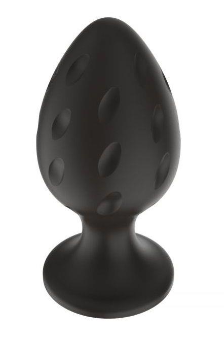 Черная средняя силиконовая анальная пробка с рельефом в виде углублений от Свободный ассортимент, Россия