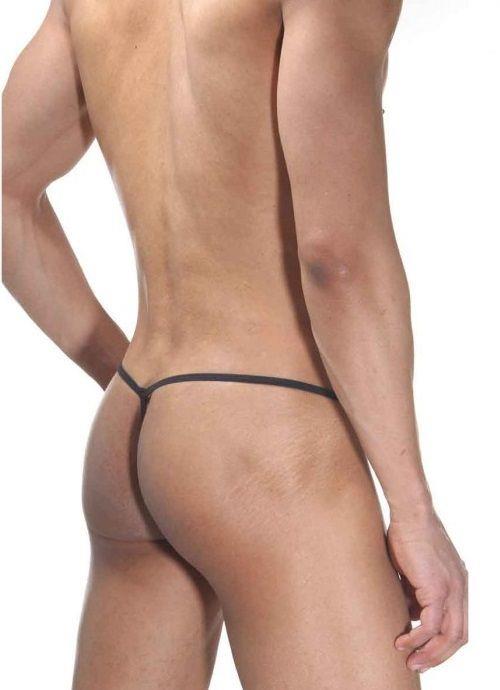 Трусы-стринги для мужчин, с верхней полупрозрачной частью-сеточкой и нижней частью из более плотного материала в тонкую полоску.