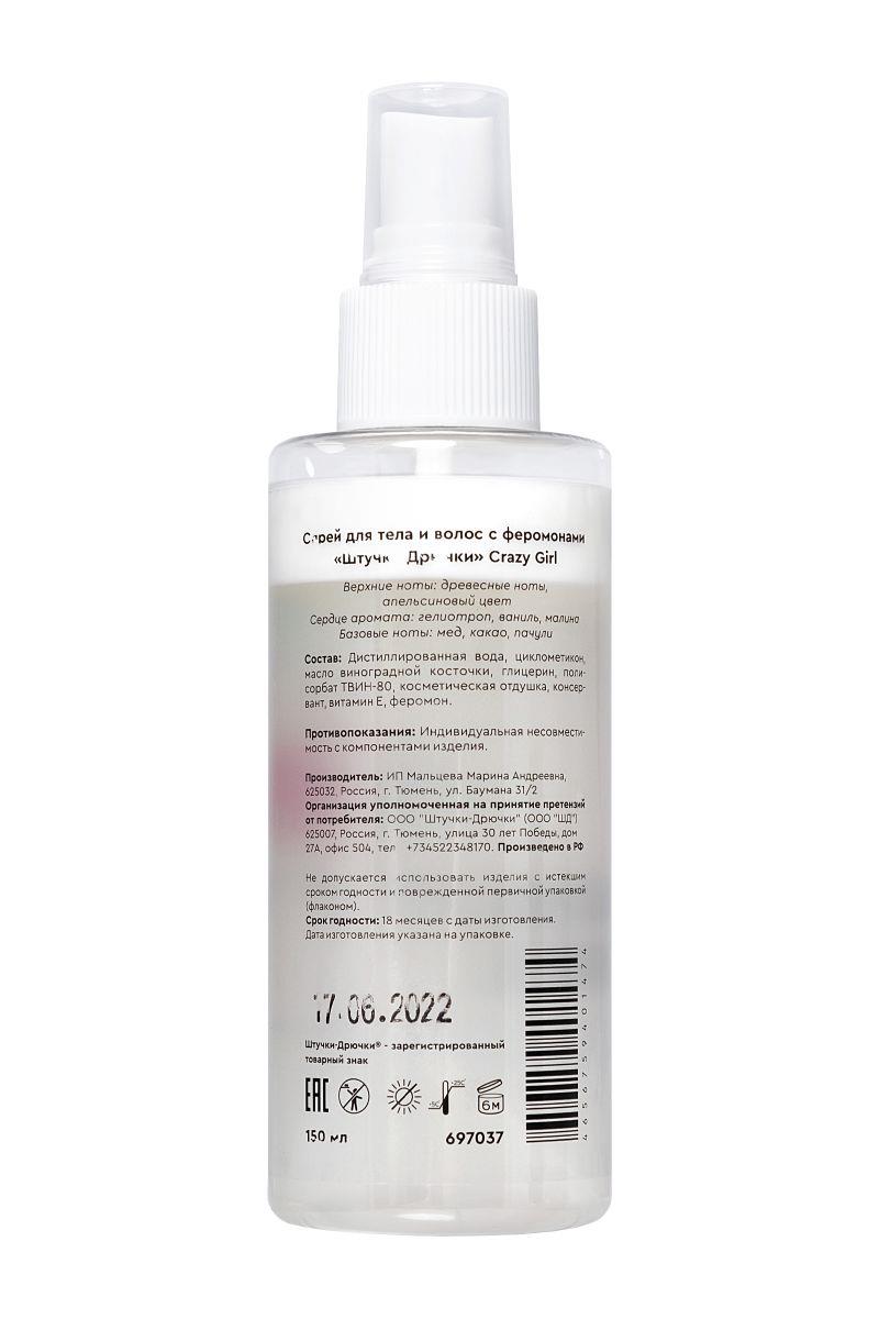 Спрей для смелых девушек Crazy Girl – это уверенность в себе, легкость и игривость каждый день. Секрет отличного настроения и магнетизма – двухфазный многокомпонентный спрей Crazy Girl, который содержит феромон, известный своим воздействием не только на противоположный пол. Феромон вызывает симпатию и всплеск интереса. Будь свободна в своих проявлениях, будь собой.