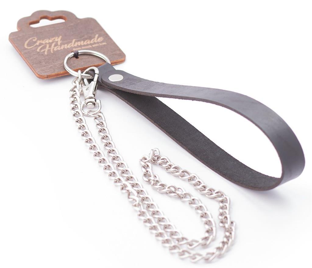 Серебристый металлический поводок с кожаной черной ручкой (80 см)