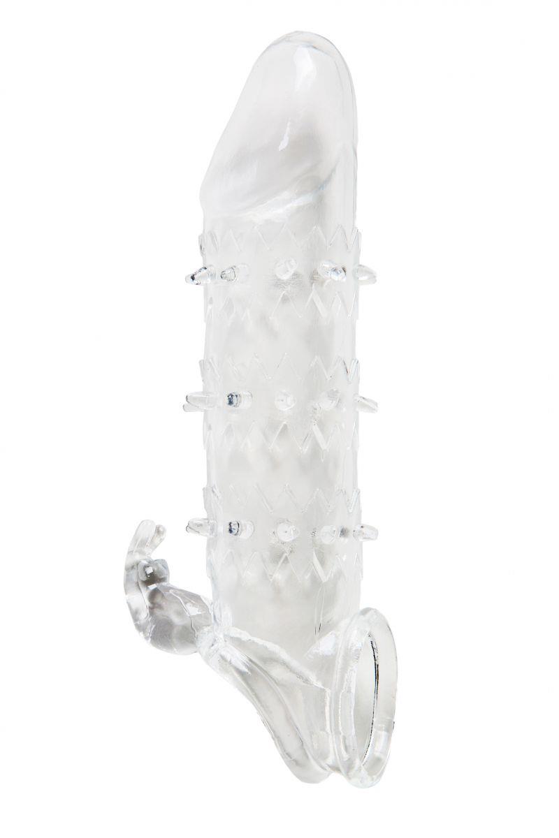 Прозрачная насадка отлично тянется, продлевает время интимной близости и компенсирует анатомическое несоответствие между партнерами.