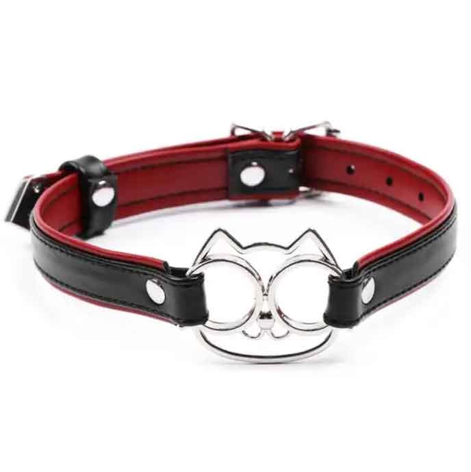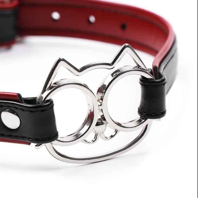 Ошейник с регулируемой застежкой декорирован металлическим декором - мордочкой кошки.