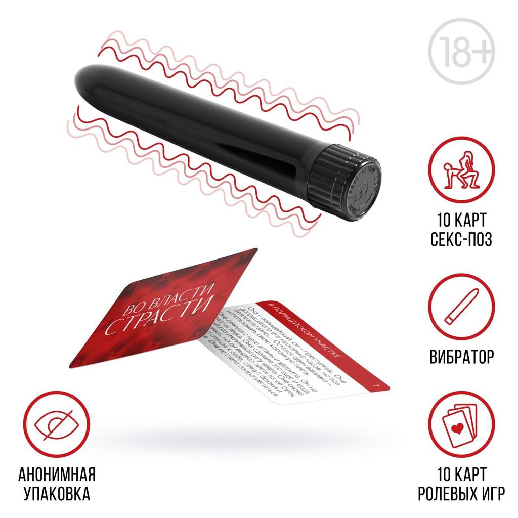 Пикантный секрет для вашего удовольствия. Этот набор позволит вам разнообразить сексуальную жизнь и добавить в неё немного перчинки. Вас ждут 20 карт из серии «Во власти страсти», которые включают в себя горячие ролевые игры и позы для секса. В комплект также входит вибратор. Начните с ролевых игр. Разыгрывайте чарующие сценарии, а когда почувствуете, что время пришло, переходите к позам.