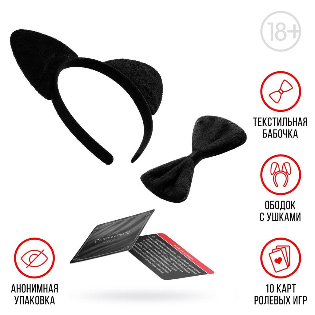 Также в комплект входят ободок с кошачьими ушками и бабочка, которые можно использовать во время ролевых игр.