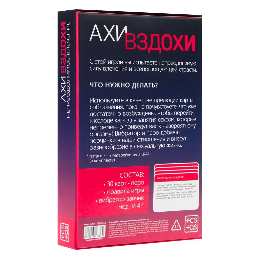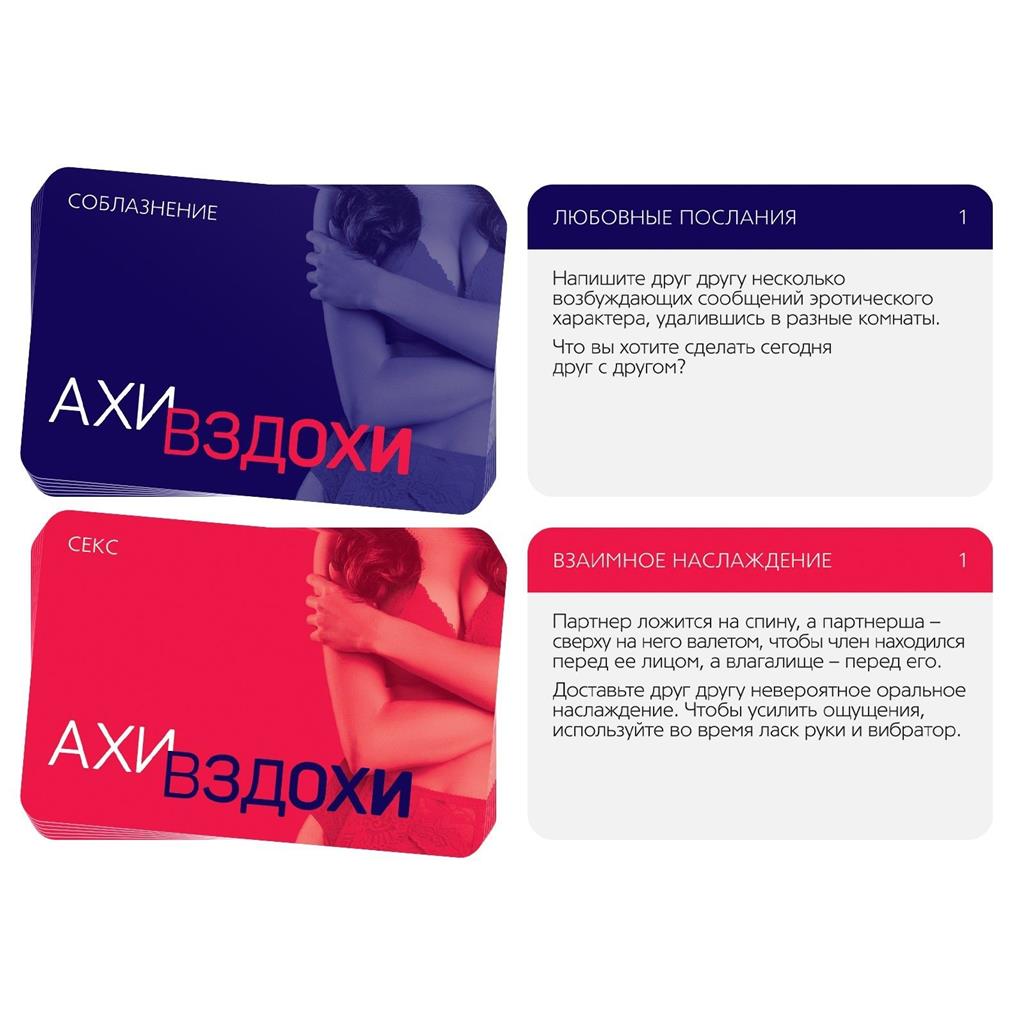 Окажитесь во власти безумной страсти. «Ахи-вздохи» - это серия эротических игр для двоих, которая включает невероятное множество пикантных заданий-фантов для него и для неё. Здесь найдутся игры в формате вопрос-ответ, ролевые развлечения и необычные позы для секса. Игры серии «Ахи-вздохи» подойдут для тех, кто только начал романтические отношения и хочет узнать друг друга поближе, а также для пар, союз которых длится уже долго.
