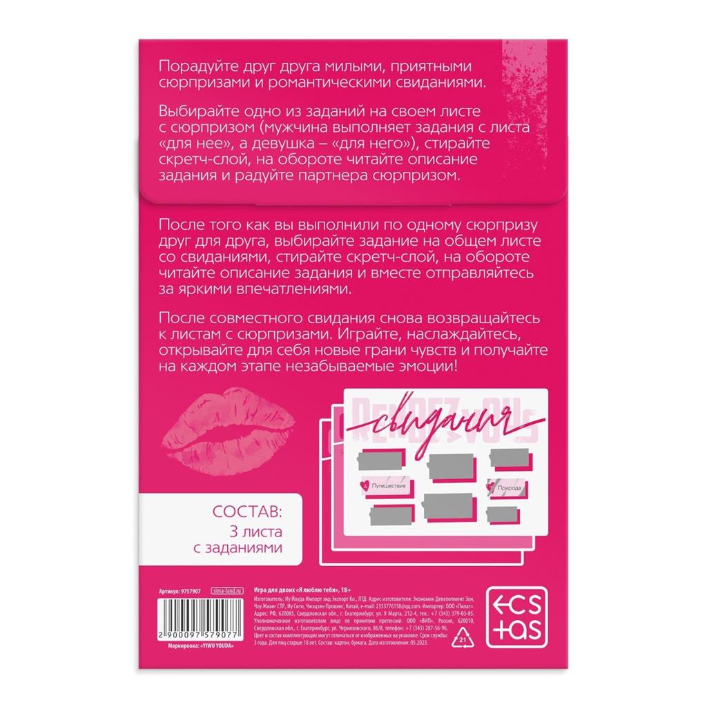 Порадуйте друг друга милыми свиданиями и приятными сюрпризами. Перед вами романтические задания, которые подарят каждому искренние и незабываемые эмоции. Наслаждайтесь друг другом, играйте, открывайте новые грани чувств и вместе отправляйтесь за яркими впечатлениями!
