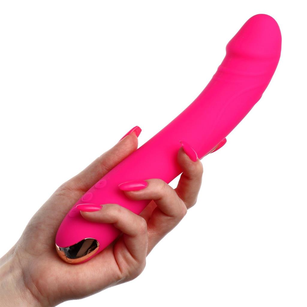 Ярко-розовый вибратор со стимуляцией точки G выполнен из медицинского силикона. Игрушка стимулирует точку G и имеет 10 режимов вибрации.