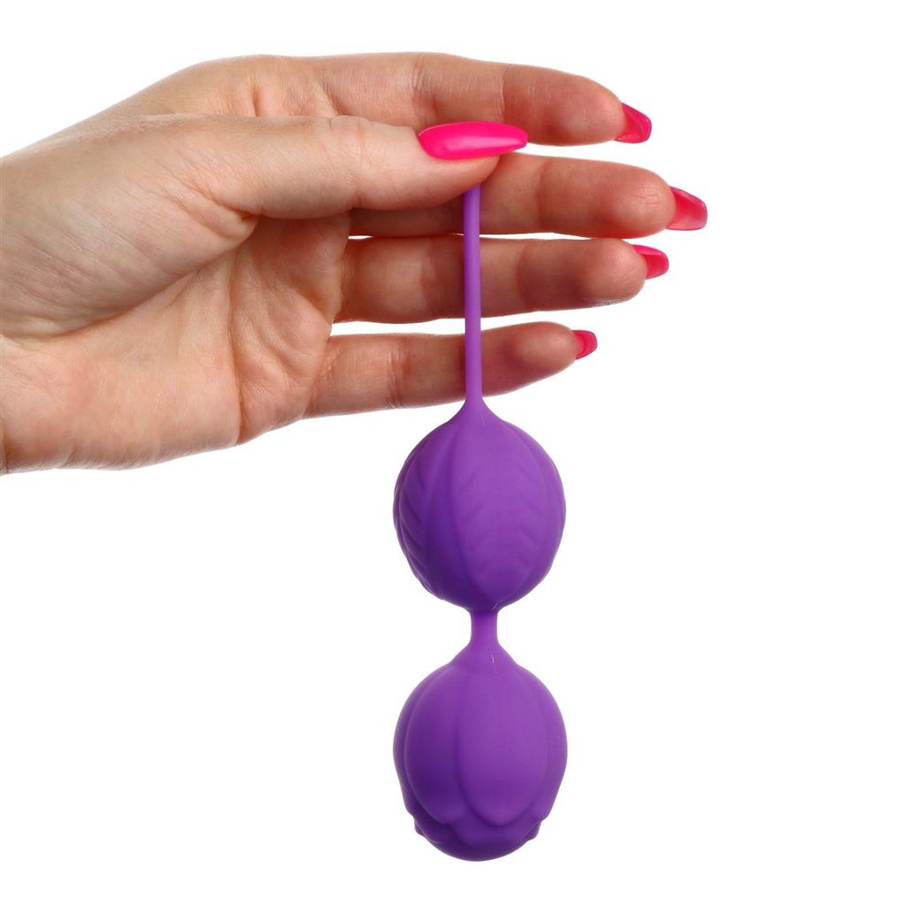 Фиолетовые вагинальные шарики на сцепке выполнены из медицинского силикона. Такие оптимальны как для начинающих, так и для продвинутых пользователей.
