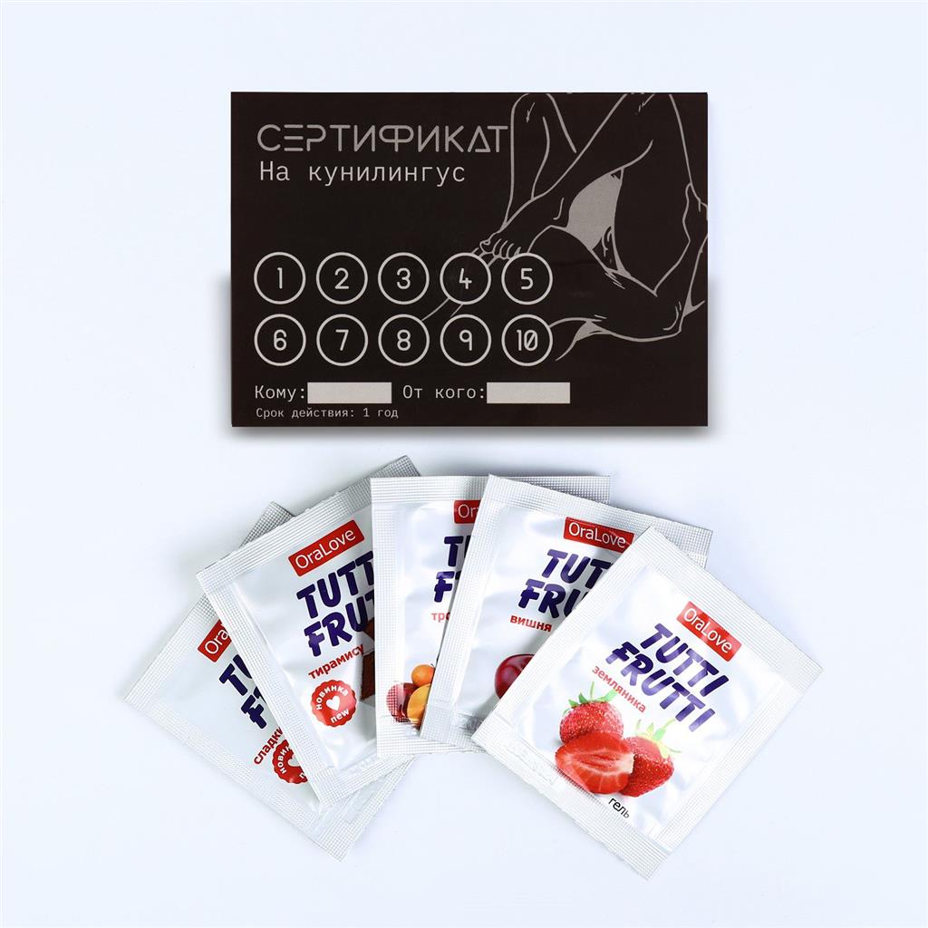 Набор «На кунилингус»: сертификат и 5 саше оральных лубрикантов