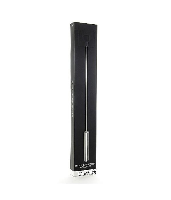 Шлёпалка с наконечником в виде квадрата с отверстием в центре, изготовленным из тонкой кожи и ручкой из металла отличного качества.